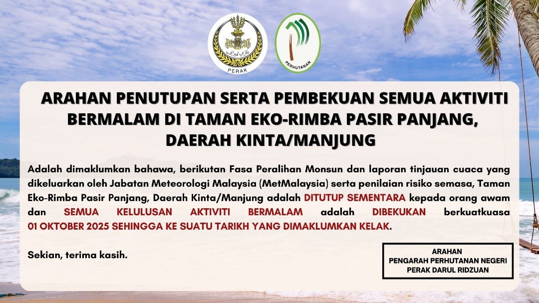 ARAHAN PENUTUPAN SERTA PEMBEKUAN SEMUA AKTIVITI BERMALAM DI TAMAN EKO-RIMBA PASIR PANJANG, DAERAH KINTA/MANJUNG