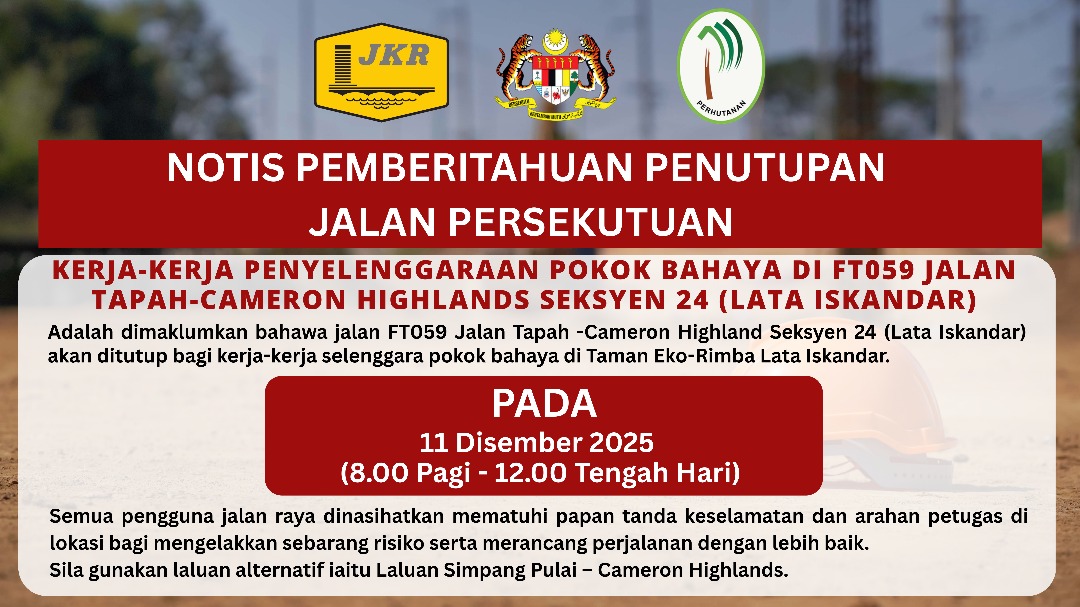NOTIS PEMBERITAHUAN PENUTUPAN JALAN PERSEKUTUAN (11 DISEMBER 2025)