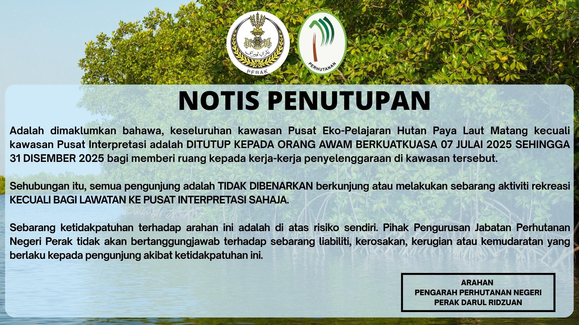 NOTIS PENUTUPAN PUSAT EKO-PELAJARAN HUTAN PAYA LAUT MATANG