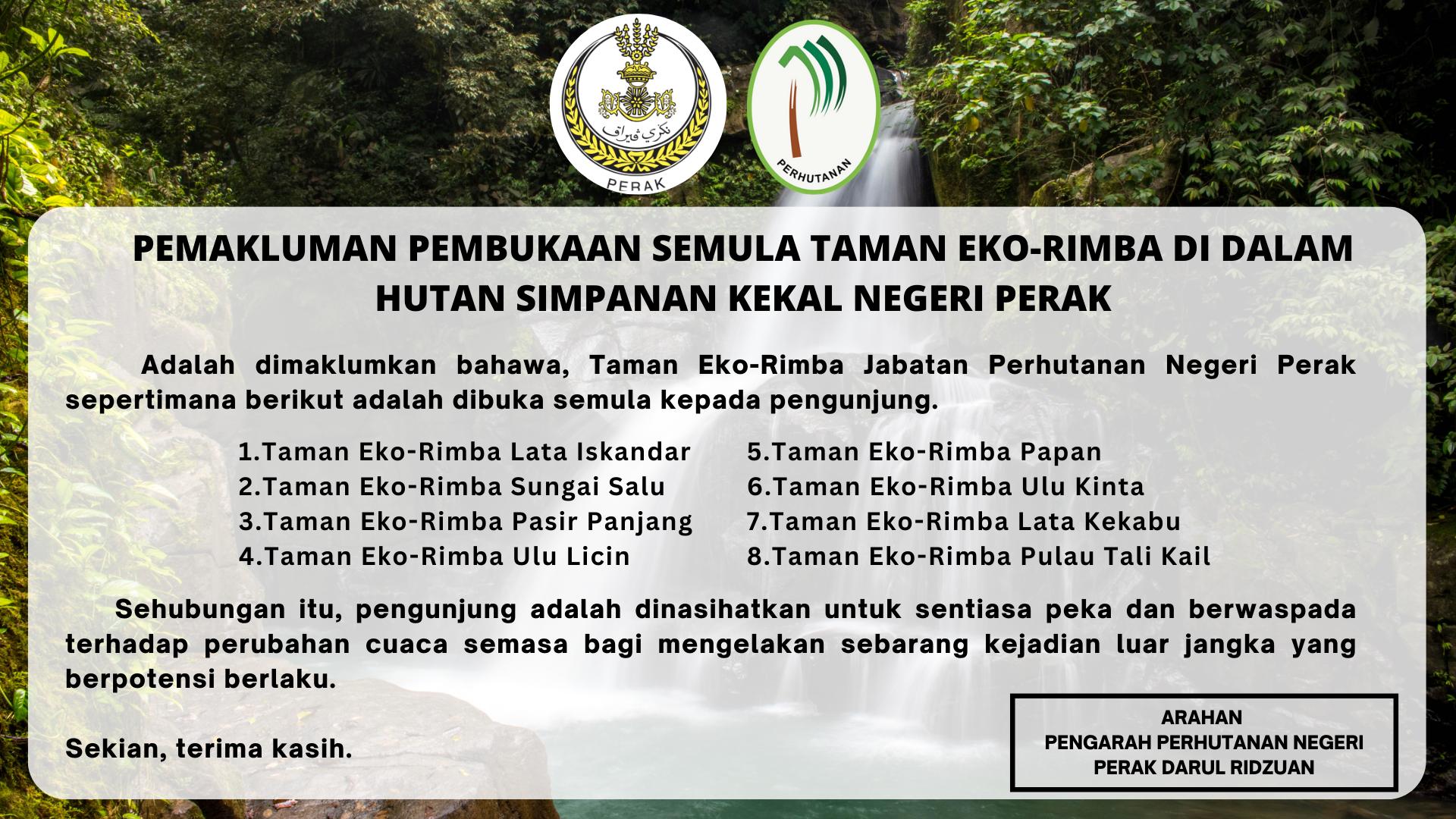 PEMAKLUMAN PEMBUKAAN SEMULA TAMAN EKO-RIMBA DI DALAM HUTAN SIMPANAN KEKAL NEGERI PERAK
