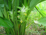 'Tumeric' merupakan sejenis herba yang mempunyai jangka hayat yang panjang dan boleh tumbuh sehingga mencapai 1m tinggi. Daunnya berjambak dengan susunan daun secara alternat, berwarna hijau muda. Daunnya licin, lanseolat dengan tepi daun yang licin. Rizomnya beraroma berwarna keperangan dan warna kekuningan di bahagian isi dalam. Pelepahnya berbentuk eliptik, lembut dan berwarna keputihan serta tumbuh secara tegak dan melengkung ke bawah.