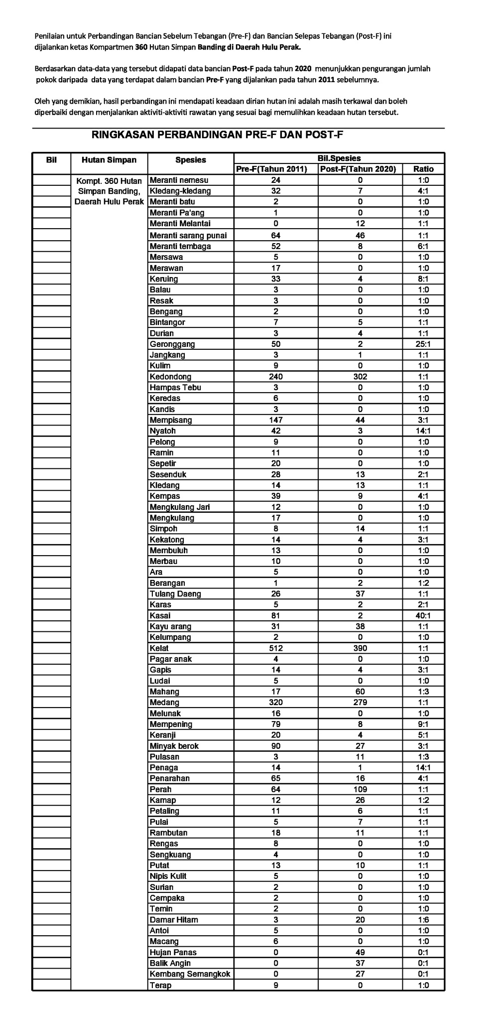 Ringkasan Perbandingan PRE-F Dan POST-F