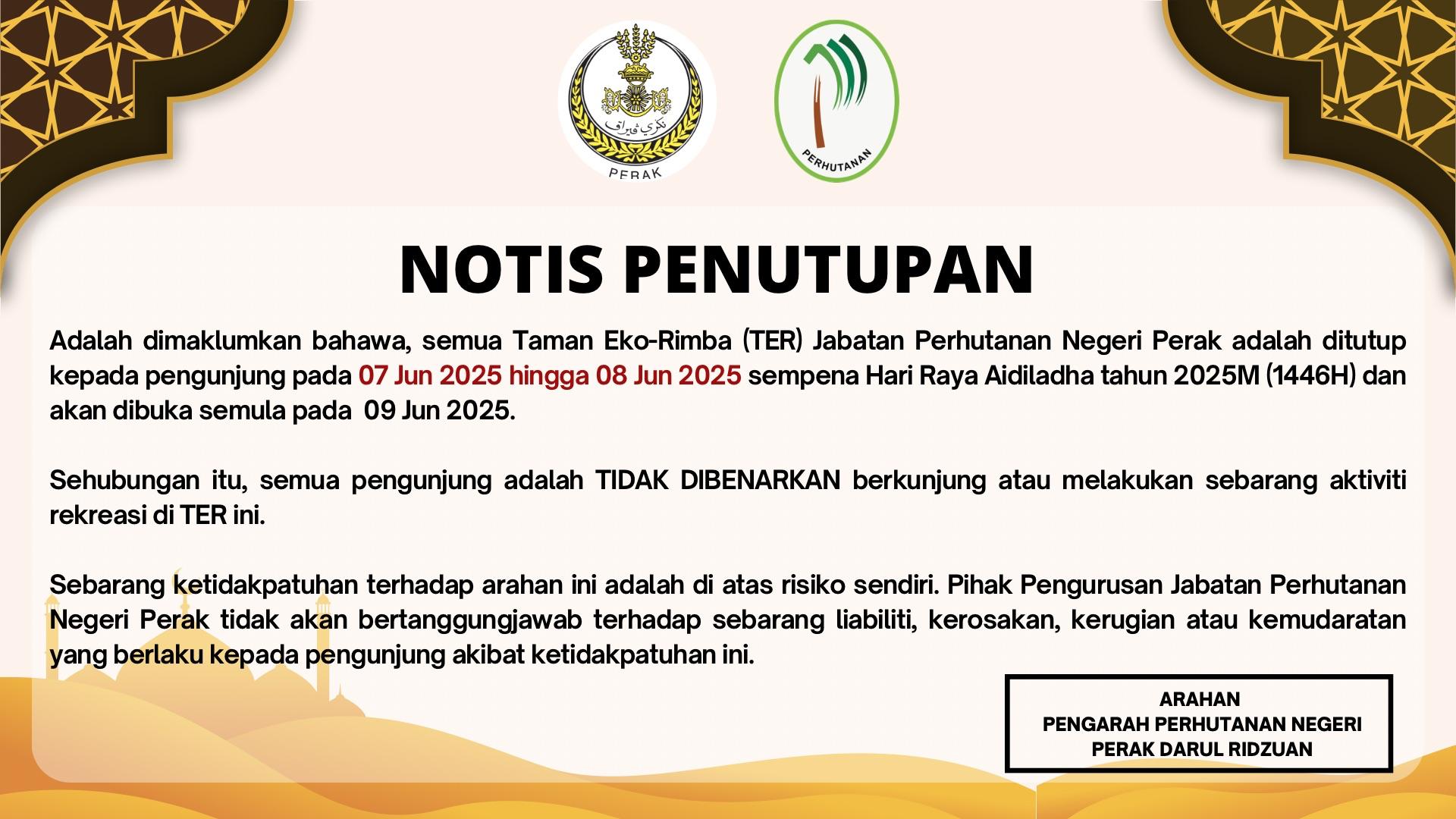 NOTIS PENUTUPAN TAMAN EKO-RIMBA (TER) JABATAN PERHUTANAN NEGERI PERAK